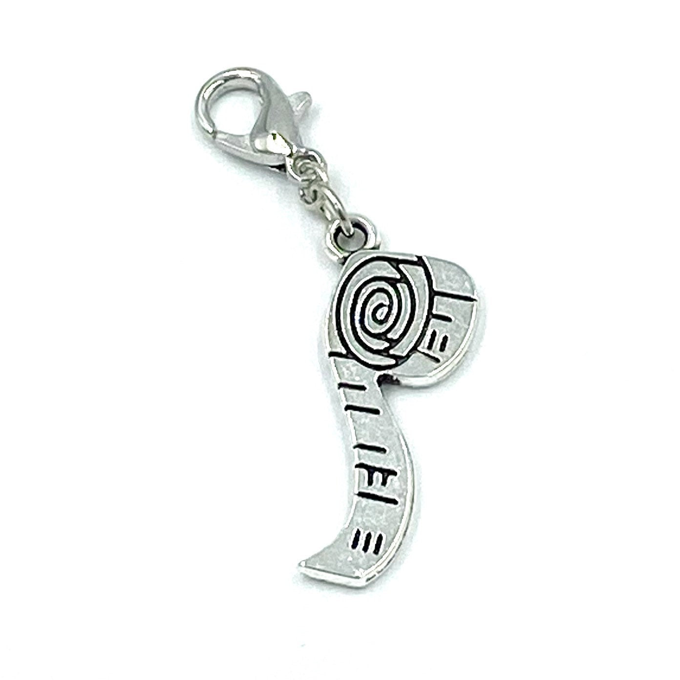 This cute tape measure charm is perfect for any seamstress, crafter or planner set up. Available with silver-tone clasp, silver-tone bookmark, or on silver paper clip.