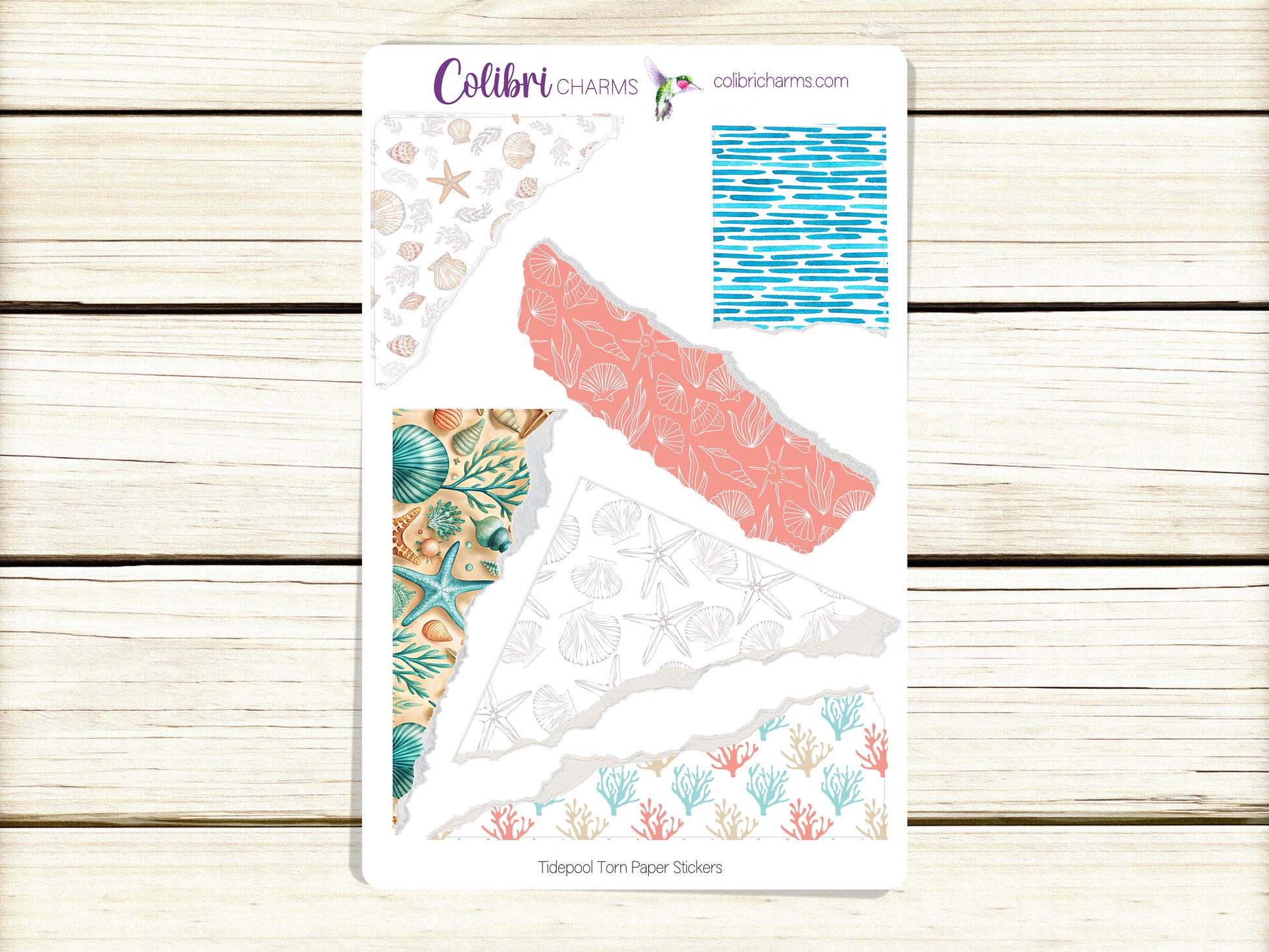 Tidepool Torn Paper Stickers, Beachcomber Deco Planner Stickers, Distressed Ripped Paper